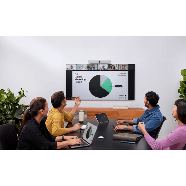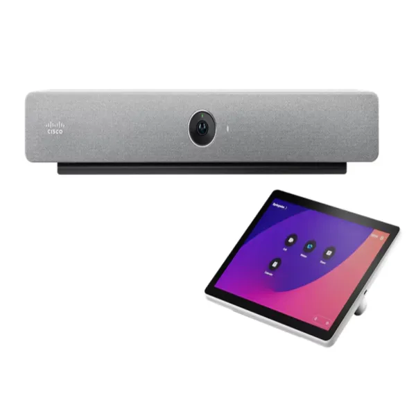 The Cisco Webex Room Bar is an advanced video conferencing solution built for modern meeting spaces, delivering exceptional 4K UltraHD video quality, intelligent audio, and seamless connectivity. Featuring a 12MP camera with a 1/2.3" CMOS image sensor, this device captures crystal-clear visuals at resolutions up to 3840 x 2160 and supports 5x digital zoom for close-up clarity. Its wide 120° horizontal and 95° vertical field of view ensures everyone in the room is visible, while features like face detection, speaker tracking, automatic brightness adjustment, auto white balance, and acoustic echo cancellation (AEC) provide a professional video experience. The Room Bar supports dual-screen display output via HDMI and DisplayPort, offering smooth streaming at 1080/60p and 4K/30p frame rates. For superior sound performance, it comes with a 4-beamforming microphone array and automatic gain control (AGC), ensuring crystal-clear voice capture during calls. It supports multiple VoIP protocols including SIP, H.245, H.323, and SRTP, and a wide range of voice codecs like G.711, G.722, AAC-LD, and Opus, along with video codecs such as H.263, H.264, and H.239, delivering exceptional audio-video quality. With both wired and wireless connectivity options, including Gigabit Ethernet, PoE, Bluetooth, and Wi-Fi (802.11a/b/g/n/ac), the Cisco Webex Room Bar ensures stable and flexible network performance. Advanced Quality of Service (QoS) with IEEE 802.1Q and 802.1p support, combined with enterprise-grade security features like AES encryption, TLS, SRTP, SSH, and IEEE 802.1X, guarantees reliable and secure communication for businesses. The device boasts a sleek and compact carbon enclosure with dimensions of 21" width, 2.5" depth, and 3.2" height, weighing just 3.31 lbs, making it easy to mount or place on a table stand. It includes multiple connectivity interfaces such as USB-C, HDMI input/output, USB 2.0, and RJ-45 Ethernet ports, ensuring versatile integration with existing setups. Powered by AC 100-240V (50/60Hz) with just 20W operational consumption, it runs on RoomOS 11 or later, ensuring an intuitive and feature-rich conferencing experience. Designed for durability, it operates between 32°F to 95°F and 10–90% humidity, while meeting global compliance standards like CEC 2.0, AES-128/256, and EU directives.