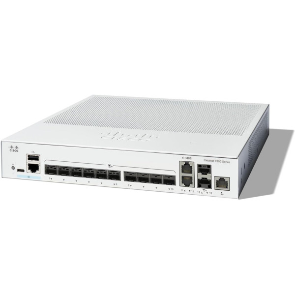 The Cisco Catalyst C1300-12XS is a high-performance managed network switch designed to meet the needs of growing network environments. It features 12x 10 Gigabit SFP+ ports and 2x 10 Gigabit copper/SFP+ combo ports, providing robust and reliable connectivity for enterprise networks and medium-sized businesses. Managed through the Cisco Business Dashboard and mobile app, it offers advanced security features to protect business-critical transactions and an energy-efficient design to reduce operational costs. The intuitive management interface ensures a user-friendly experience, making it easy to set up, manage, and monitor the network. Whether you're looking to upgrade your existing network or deploy a new one, the Cisco Catalyst C1300-12XS provides high-performance connectivity, advanced security, and efficient management, making it a perfect choice for secure and scalable network infrastructure.