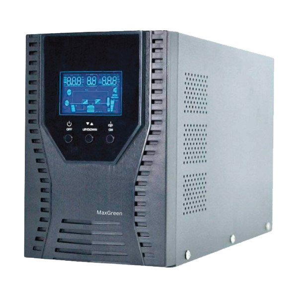 MaxGreen W3KS 3KVA Standard Backup Online UPS comes with PWM technology with IGBT to obtain equipment with high technical features. The capacity of this UPS is 3000VA and the input voltage is 120VAC~300VAC with a load capacity is 2700 watts. It features a a72VDC(12V9Ah) / 96VDC(12V7.5Ah) battery which gives Normally 15-30 mins backup and a Longtime need depending on demands. Data is provided locally through the mimic panel with LEDs and LCD display.